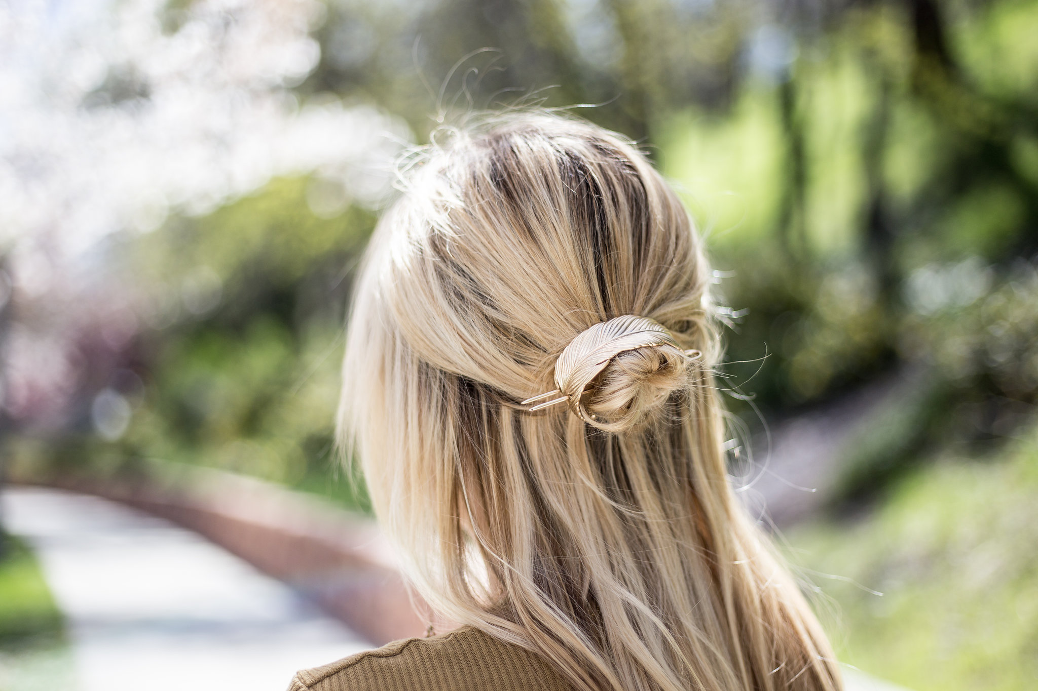 For today’s shoot I was going for a more fun and flowing spring style and I love how the pictures turned out.  I have had my hair in many different styles because I get bored of it looking the same – but I have to admit, I am loving the versatility of the length and style I have now because it allows me to feminine, casual and even a little sassy depending on my current mood.  What appeals to you?  Do you like to try new and different hair styles as well?  If you haven’t tried using a bun cuff, let me tell you, it is actually one of my favorite accessories right now.  I find myself coming up with new ideas and ways to wear it – in fact I may have to buy some more because there are so many different ones to choose from!